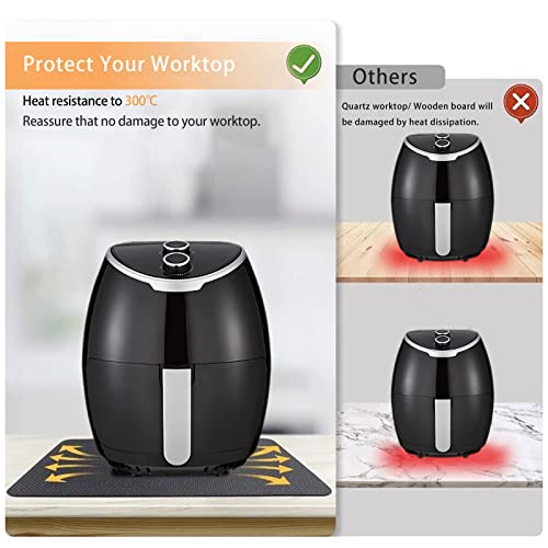 - Kitchen Countertops Heat Resistant Mat: The heat generated by the air fryer or other kitchen appliances may damage your kitchen countertop if it an of granite, marble countertop, and wooden. Heat-resistant mat for the air fryer effectively prevents cracking of kitchen countertops.