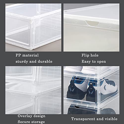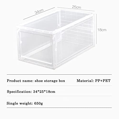 - Stackable shoe box: Are you still worried about how to store your shoes? Transparent PP Thickened Dust Proof Shoe Box keeps your home clean and tidy. Thanks to the front shell design, you can easily take the shoes out of the box or put them back in their original place. And it protects shoes well in a dry and antibacterial environment.