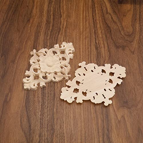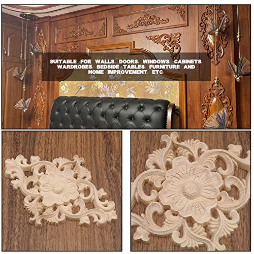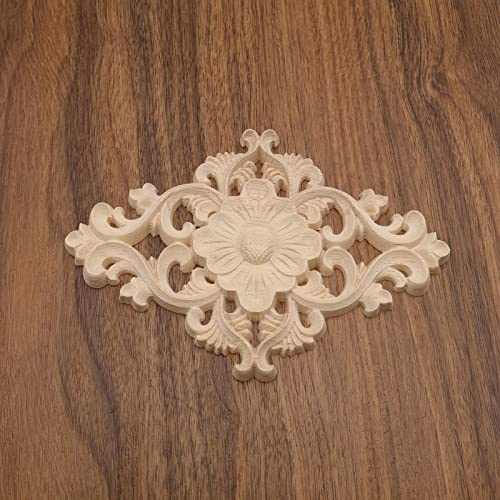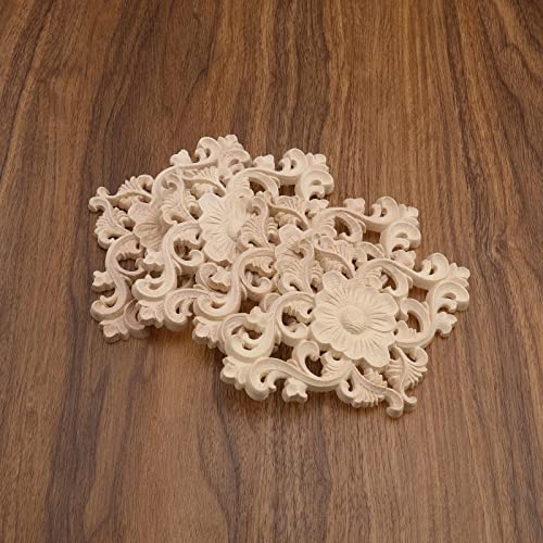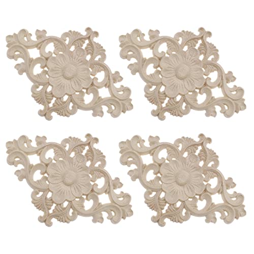 4PCS Wood Carved Appliques Unpainted Onlay Furniture Ornament Wooden Flower Shape Decoration for Home Furniture Wall Cabinet Door Mirror 15x10.5c