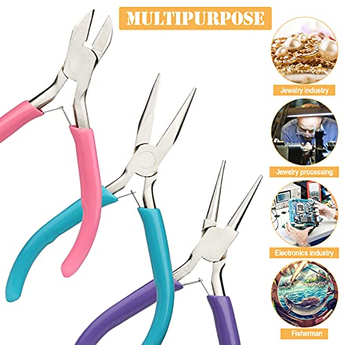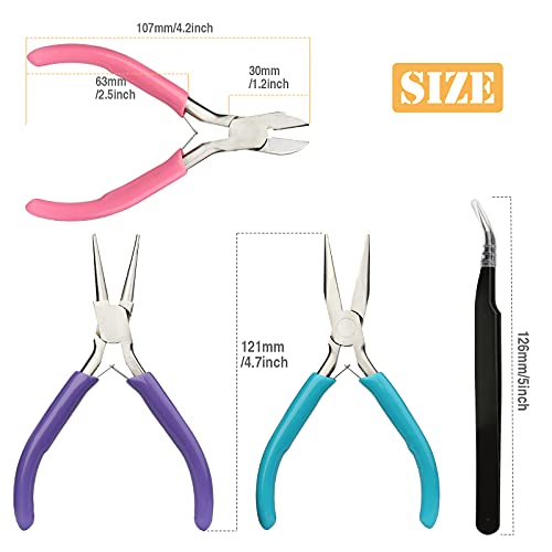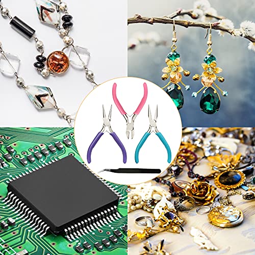 - 【Package Included】: Each package contains 3 necessary tools pliers:chain nose plier,round nose plier,diagonal plier,1 stainless steel tweezer and 1 jump ring opener.It is a high quality pliers set and can be used multiple times.The different colors are easy to distinguish.Each pliers has anti-rust oil,which can be wiped before use to prevent items from being soiled.