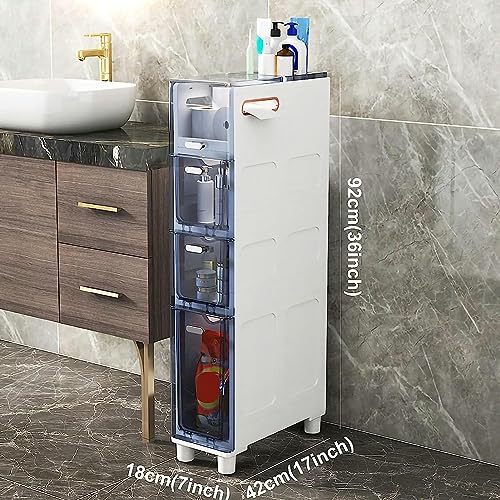 - 【Narrow design】This toilet paper cabinet only covers an area of 18cm (7inch) wide.A compact bathroom cabinet can be placed in a narrow space between a wall corner or a bathtub and toilet,providing ample gap space.In addition,the narrow bathroom floor cabinet is suitable for any place in your home,such as the kitchen,bedroom,living room,which will simplify your home
