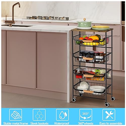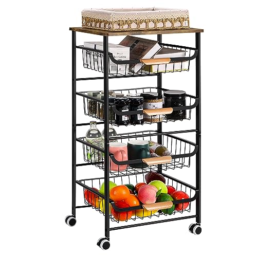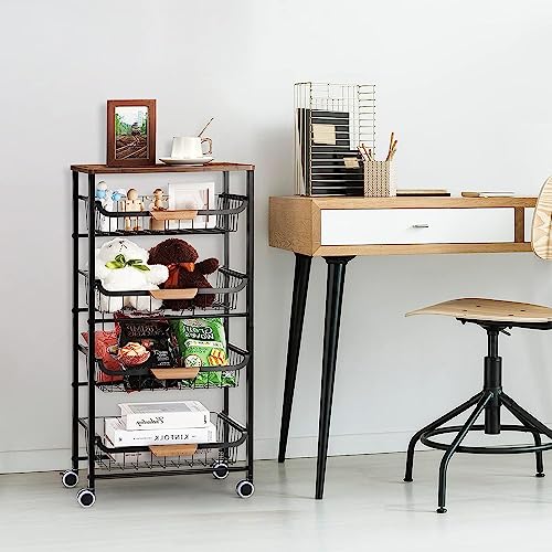 - 🍋【Large Capacity】This 5-tier kitchen storage basket and rolling utility cart, with large storage capacity, helps to keep your home/office/kitchen well organized. It is a perfect storage solution for your home.