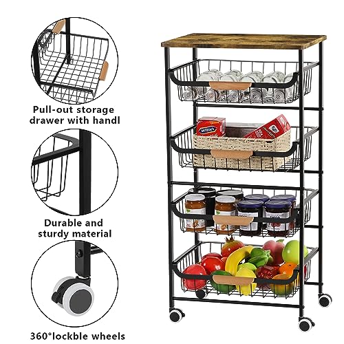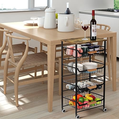 - 🍅【Multi-functional Storage】Consists of 4 pull-out basket, perfect for organizing a multitude of household items, such as vegetables, fruits, spice rack, dishes, toys, books and ect. The basket can be pulled out, you can take something easier.