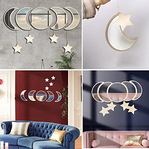 - *This Beautiful Moon Phases Mirror Sets are made of : 1 round mirror approximately 26.5cm in diameter, two medium crescent-shaped mirrors, two small crescent-shaped mirrors and 4 stars. Use double-sided tape or rope to hang them on the wall. <BR>