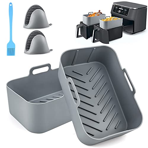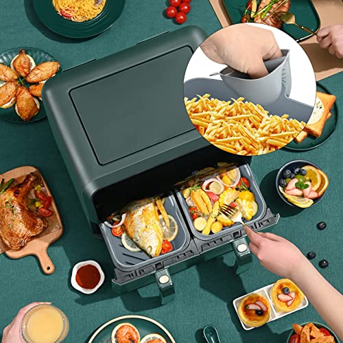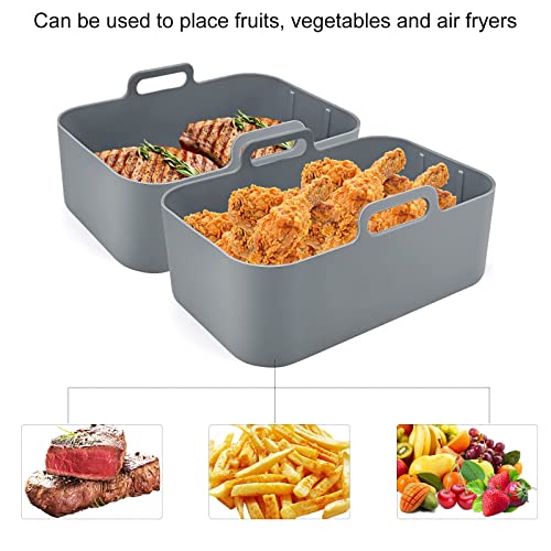 - Premium Material: This is a double air fryer silicone pot made with 100% food safe grade silicone, non-stick, no odor, non-toxic, non-BPA, with good heat resistance (440° F to -40° F). Size : 7.8*5*2.8 inches, fit for 8QT double basket air fryer, you will enjoy your freshly baked and delicious food with confidence.