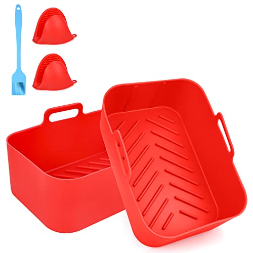 - Value Packaging: Our air fryer silicone liner has 2 reusable silicone baking baskets, ideal for cooking different foods or double servings, we also give you a pair of silicone gloves and a silicone oil brush to enjoy healthy and delicious fried food.
