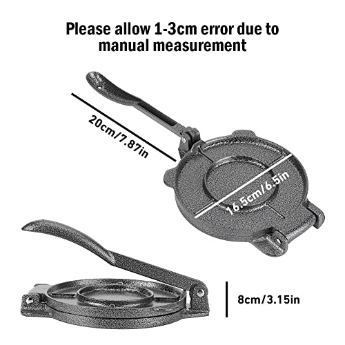 - 🍳6.5 Inch Cast Iron Tortilla Press --- Adopts heavy cast iron, which is safe and durable, its performance is better than the stability and service life of standard aluminum tortilla machines.
