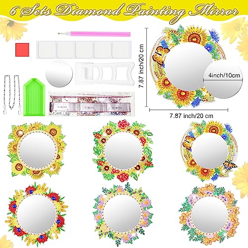 - What You Will Receive: the package comes with 6 pieces of sunflower diamond painting mirrors in total, which will also provides you diamond painting pen, colorful gems, gem tray, shelf, mirror, clay glue, chain; The quantity is sufficient for you to meet your diverse DIY requirements