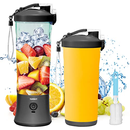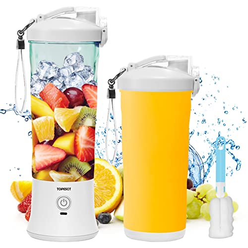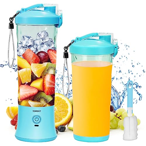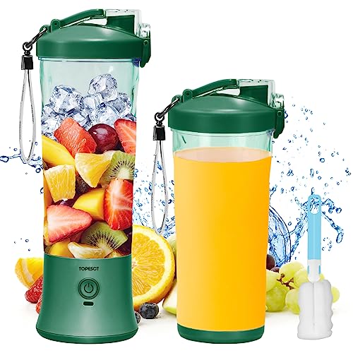 - 【600ml Larger Capacity】With the 600ml large capacity, TOPESCT portable blender could hold 20%-60% more juices than majority of portable bleders in market with the capacity of 360ml, 380ml, 420ml, 450ml and 510ml; Single one time blending could provide enough shakes or juices for your daily vitamin and protein needs.