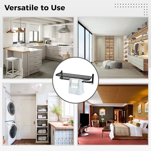 - 【Widely Used】 Our matte black towel rack is versatile to use. It can complement a room perfectly or accentuate more muted bathrooms or hotels with a touch of flair. Perfect for anywhere you like within your bathroom, kitchen, etc to hang or dry your towels.