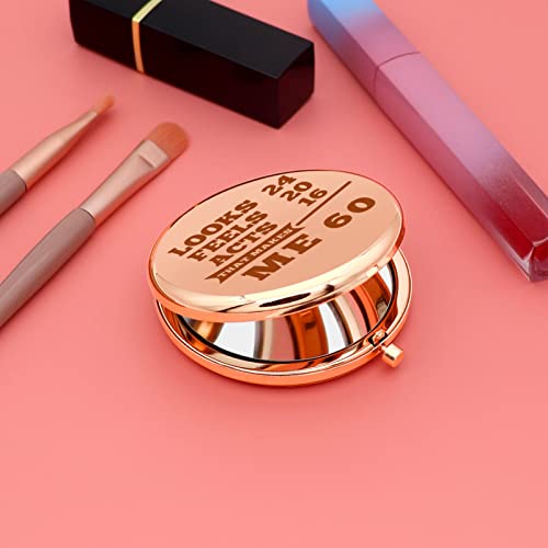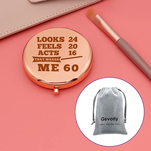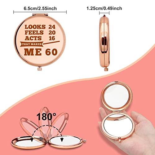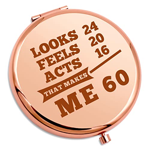 • Happy Birthday Gift for Women -Personal Makeup Mirror engraved with 'Looks 24 feels 20 acts 16 that makes me 60.’ Make your birthday gift unique! When you want to buy something for someone who has everything, this is a suitable and popular gift. This is the perfect milestone makeup mirror, suitable for 60th birthday gifts. The perfect female travel accessory!