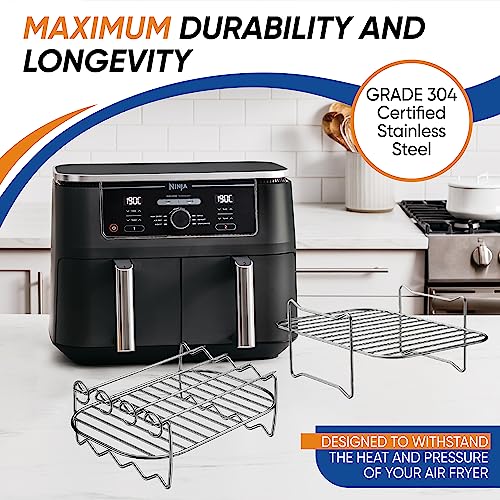 - ⭐ FOOD-GRADE MATERIAL: Our Ninja air fryer rack is durable, sturdy 304 stainless steel, while following strict quality control guidelines, and made to handle high temperatures.