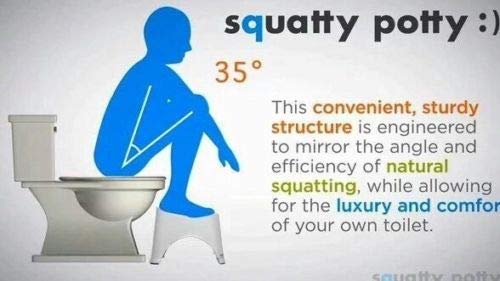 - ✅ BATHROOM POTTY SQUAT AID FOR CONSTIPATION PILES RELIEF Enables Perfect Squatting Position, for efficient, healthy and painless bowel movements. EASY TO USE: put in front of the toilet and get into the optimal, natural 35°-squatting position while defecating.