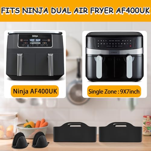 - 【Perfect For Ninja AF400UK】These silicone lines are specially designed for Ninja Dual Air Fryer AF400UK. They fit the zone perfectly. Built with silicone lines for good heat dissipation, the specialized design will distribute heat more evenly around the food and the bottom won't get burnt.