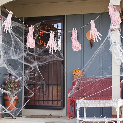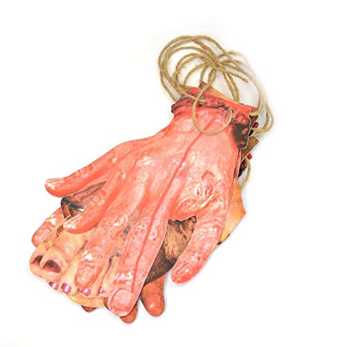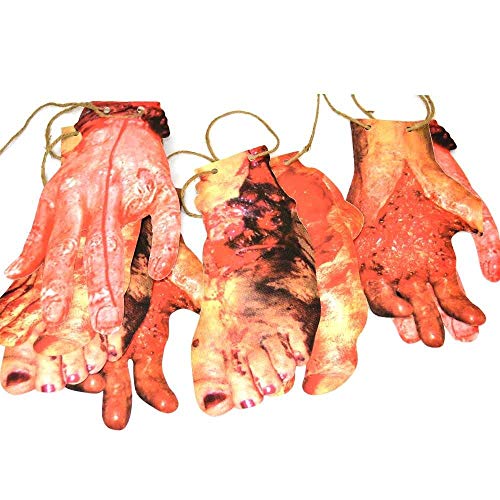 • 🎃 [DETAILED CRAFTSMANSHIP] : Meticulously displayed on a cardboard garland, the bloody limbs - hands and feet - enhance the overall macabre theme, delivering a spine-tingling effect that complements the Halloween spirit.
