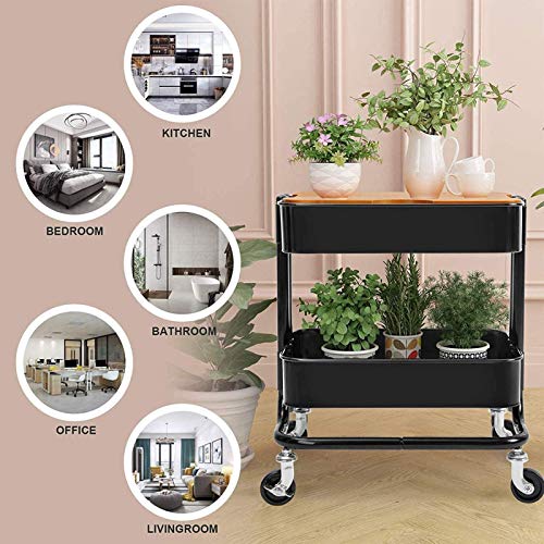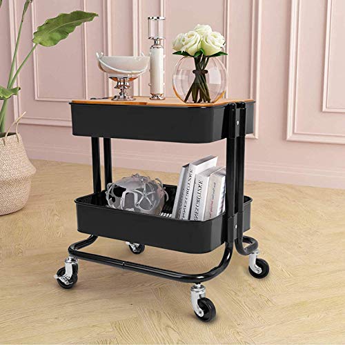 aasdf 2 Tier Rolling Cart Metal Utility Cart Easy Assemble Utility Serving Cart Sturdy Storage for Classroom Office Home Bedroom Bathroom,A2