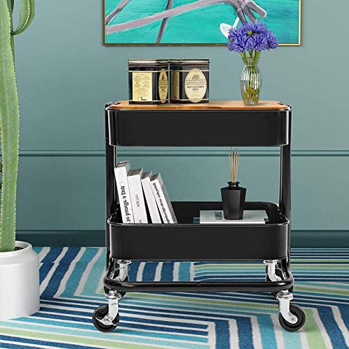 Home Home Office Furniture aasdf 2 Tier Rolling Cart Metal Utility Cart Easy Assemble Utility Serving Cart Sturdy Storage for Classroom Office Home Bedroom Bathroom,A2