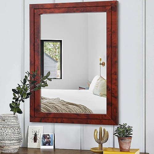 - Stylish&Eye-Catching:Wooden border in retro color with subtle for a rustic touch. This farmhouse style wall hanging mirror can keep your space looking country-chic.