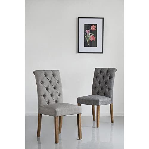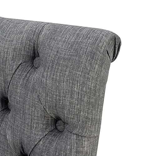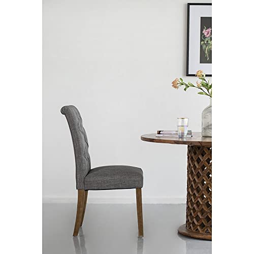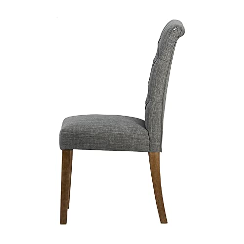 - CONTEMPORARY DINING CHAIR: The tufted back and soft cushioning of this armless dining chair create an impressive balance of comfort and style. The charcoal finish of the fabric gives the chair a versatile contemporary look, while the textured back delivers a vintage element