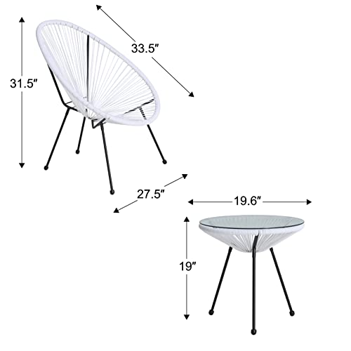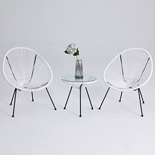 ABCCANOPY 3-Piece Patio Furniture Set,Acapulco Chair Conversation Bistro Set, Indoor&Outdoor All-Weather Patio Furniture Sets with Glass Top Tabl