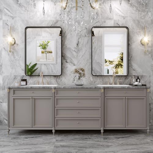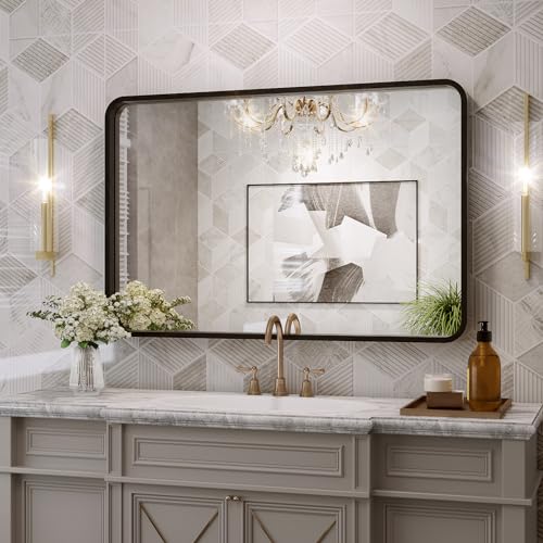 - 【Clear Reflection Bathroom Mirror】 Wall mounted bathroom vanity mirror is designed with HD glass, clear lines, simple modern design, deliver a clear reflection with no distortion.