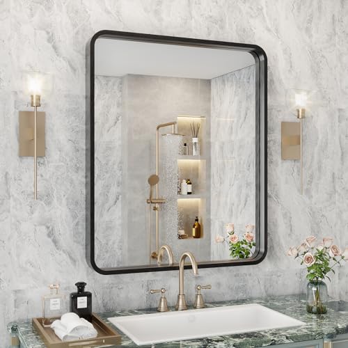 - 【Sturdy Black Bathroom Mirror】 Abelockand black metal mirror is built with 4MM HD glass, it features shatter-proof, burst-proof, much safer to use. Metal frame design makes this mirror shatter-resistant, explosion-proof, anti-rust, ideal for using in bathroom, entryway, bedroom, living room wall decor, or above your dressing table.