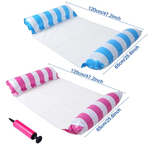 - 【Super Value Hammock】: Our pool float hammock includes 2 Pcs float hammock chair and a manual air pump. Each measures about 47 x 26 inches/120*65 cm.
