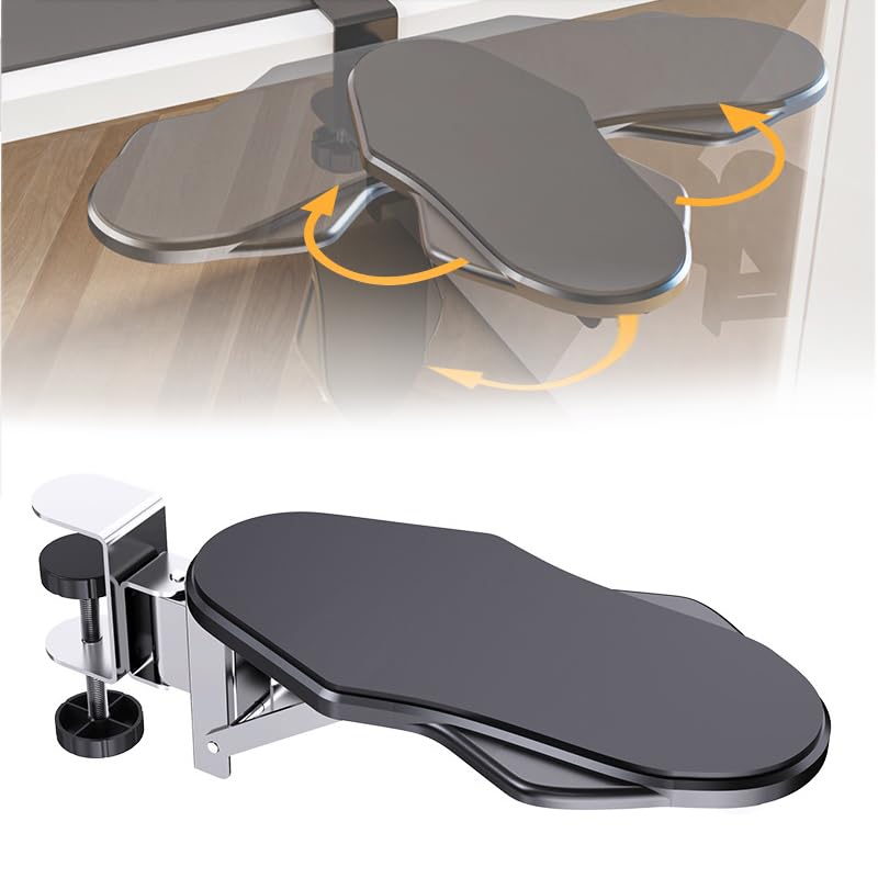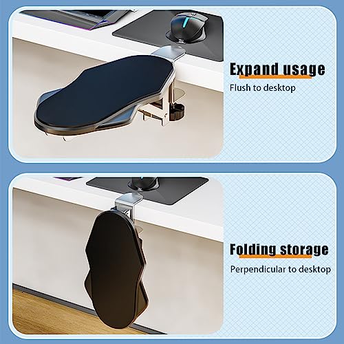 - 【Easy to install】: This arm rest for desk requires no installation parts, just lock the armrest on the edge of the desk and tighten it. And the desktop mounting parts are equipped with rubber pads, no need for mounting holes, will not scratch your desk