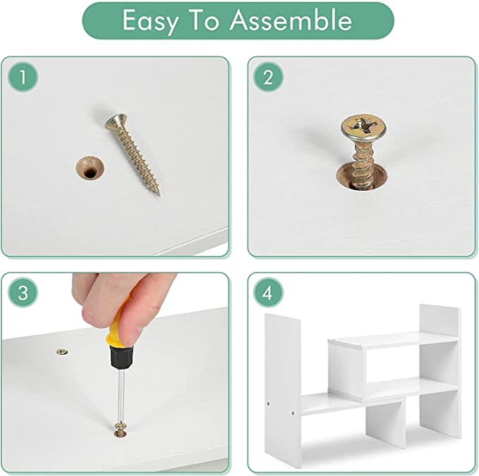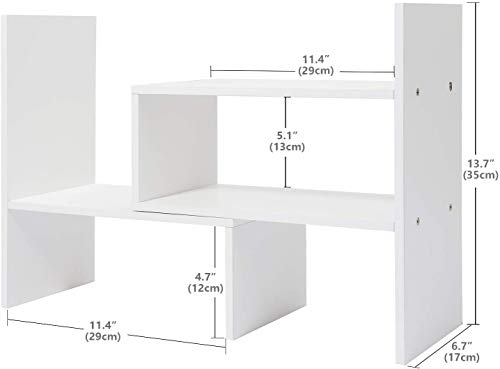 - EASY TO ASSEMBLE: Wood desktop bookshelf is easy and simple for you to install on your own. Screws are included. Dimensions (inches): L12.59(can extends to 24.01) X W6.69 X 13.77H