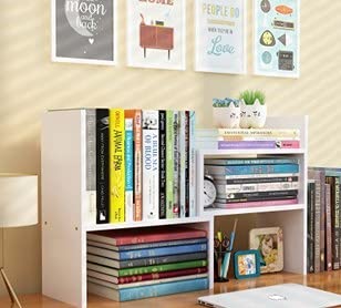- QUALITY MATERIAL:desktop bookshelf Made of MDF wood,healthy and environmental protection,with edge sealing process, wear-resistant, durable,uniform color.The open shelf adds extra space and keeps your desk organized