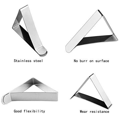 - Materials - These clips are made of sturdy stainless steel, rust-proof and flexible enough to keep tablecloths and picnics. Fix the tablecloth on most picnic tables and reuse it.