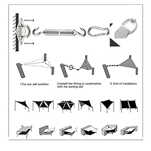 - [ Easy To Install ] : Featuring a ring on each corner which allows you to safely secure the sail shade to an anchor point, high quality ring buckle, it can well control the tightness and is convenient to be fixed wherever needed