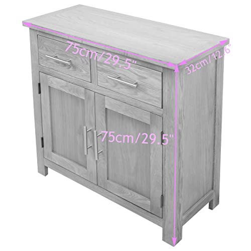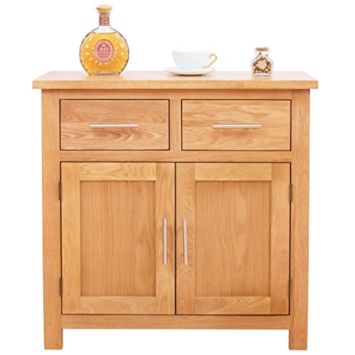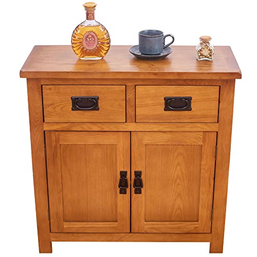- > Compact Solid Wood Cabinet Featuring 2 Doors and 2 Deep Drawers. No Assembly Required