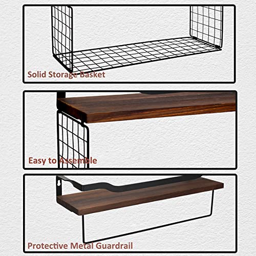 - 【Practical Size & Sturdy Construction】- Dimension of the basket: 16.5 inch L x 5.7 inch W x 6.3 H, totally enough to hold 4 toilet paper rolls.Compared to boards made from soft paulownia wood, our floating shelves are handcrafted from solid and long-lasting pine wood,each shelf is sturdy enough to hold 25 lbs with ease!