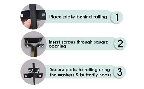 • Easy Installation - Simply attach the clamp to your railing and pole, secure with the plates, screws and butterfly hooks - all provided. Quick and easy to set up. No need for a separate wall-mounted parasol or umbrella stand!