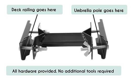 • Versatile Usage - Our Black Patio Parasol Holders are compatable with most railings. Designed to support garden parasols, bird feeders, torches, and flag poles. This 2-pack of heavy-duty clamps is perfect for maximizing the space on your balcony, garden decking, balcony bench or patio railing. No need for bulky umbrella bases. These holders are suitable for poles of diameter from 1cm up to 5cm ( 0.39" - 2"). Also available in a 3-pack. Easy to set- up. No additional tools are needed.