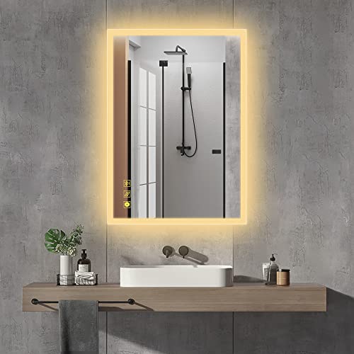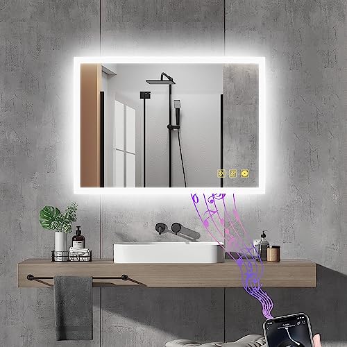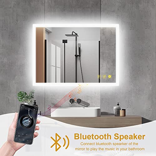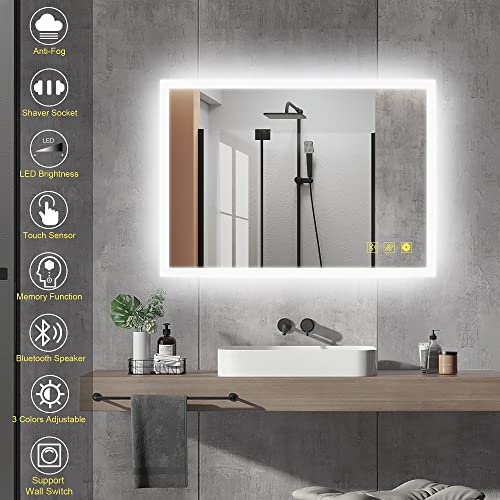 - AILIGHTING Bathroom LED Vanity Mirror with Shaver Socket, Bluetooth Speaker, 3 Color LED Lights, Touch Switch, Demister Pad Waterproof IP54 50x70cm