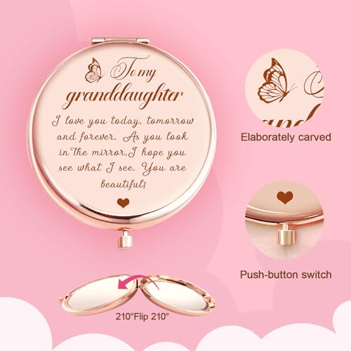 Aievlinkr Granddaughter Gifts from Grandma and Grandpa, Gifts for Granddaughter, Personalized Engraved Compact Mirror, to My Granddaughter Makeup