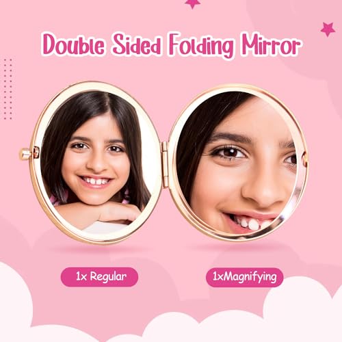 • Double-Side Folding Mirror - 1× Side shows crystal clear reflection, help you make sure that your lipstick, eyeliner and hair are in perfect condition, another side is 2×magnification, provide more details on your face, ensuring you do a professional perfect makeup, take care of every beauty detail.