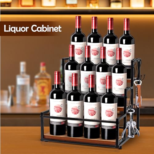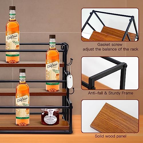 AIEWEV Coffee Syrup Bottle Rack,3 Tier Wine Bottle Holder Shelf, Wooden and Metal Coffee Bar Organizer Accessories,12 Bottles Storage Shelves for