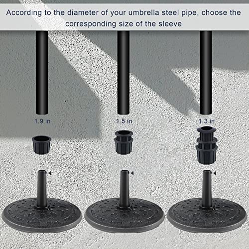 - Proper Sizes: The umbrella base pipe sleeves have 3 inner diameter sizes, including 1.3inch, 1.5inch and 1.9inch. The three sizes of straight pipe sleeves can be perfectly combined together, which can fit for most umbrella stand poles. And the oblique mouth pipe sleeves are 2.17inch / 5.5cm in outer diameter. Please check your umbrella hole size before buying.