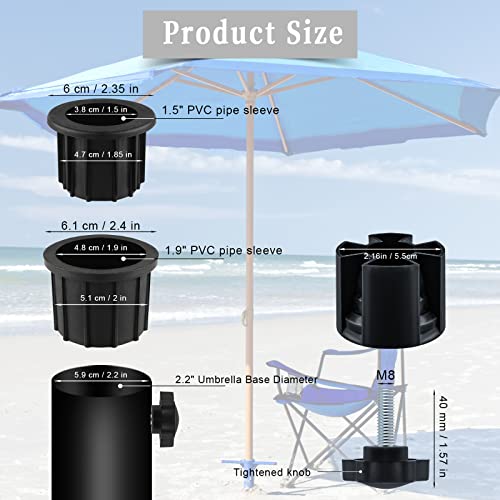 - Package Content: You will get 2 sets of patio umbrella base parts (2pcs 1.9inch umbrella base pipe sleeves, 2pcs 1.5inch umbrella base pipe sleeves), 2pcs oblique mouth PVC pipe sleeves and 2pcs M8x40mm hand knob tightening screws. Perfect collocation can meet your needs of replacing umbrella parts, ideal for stabilizing and aligning patio umbrella bases.