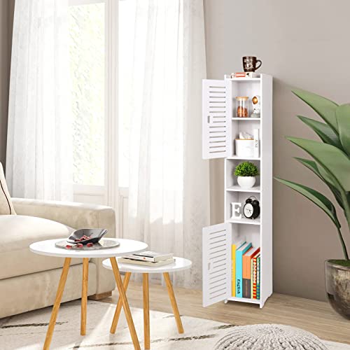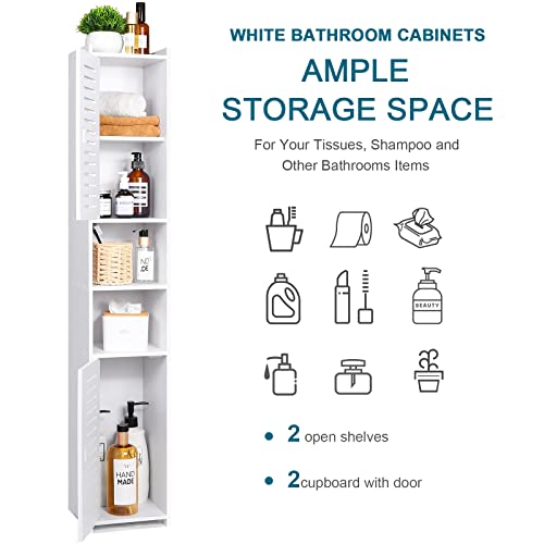 Product Description bathroom cabinets free standing This is our new and high quality bathroom high cabinet which provides the perfect solution to your storage problems. The bathroom cabinet offers large storage capacity in a compact space so it can help you save space. It is ideal for bathroom, hallways, kitchens and beyond If you're looking for storage space with a splash of style, this floor cabinet is a must-have for the bathroom or living room in any modern-inspired ensemble,It can hold heavy object, like Laundry liquid, plants, and other bathroom supplies, toilet papers inside.So don't hesitate, it's a good choice for you! Specifications: - Color: White - Material: High-quality PVC - Product Size: 7.87 inch(L) x 7.87 inch(W) x 46 inch(H) - Product Weight: 9LB waterproof bathroom storage cabinet Waterproof and moisture-proof Large-capacity Bathroom Cabinet Easy to assemble Modern white appearance: The storage box with clean white appearance, simple lines, smooth surface painting and smooth texture is an ideal storage helper and home decoration. Gives us much more storage : With a slim and compact body, this cabinet will not occupy much room. Just put it in a corner and then you can get a space-saving bathroom furniture. Widely applicable: Freestanding floor-to-ceiling lockers can be used in any space such as your bathroom, living room, laundry room, kitchen, corridor, etc., for storing towels, hygiene products, snacks, shoes and other items.
