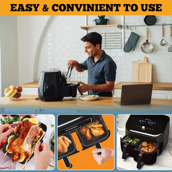 - ★【Easy To Clean】The Air Fryer Liners Silicone Can Be Washed Easily And Keeps Air Fryers Ninja Clean. The Dual Basket Air Fryer Kitchen Accessories Is Also Dishwasher Safe