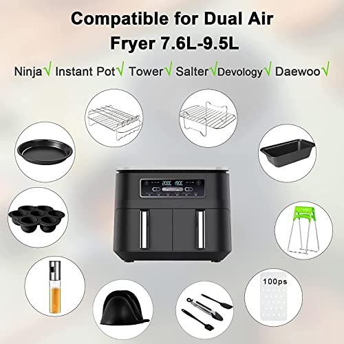 - [Compatibility] These EAIMi accessories designed for 7.6L-9.5L dual air fryer, also fit for larger air fryers, which might be a little small. Applicable for Ninja and most of dual air fryer on the market. The maximum size of our air fryer accessories is 20(L) * 14(W) * 8(H) cm. Please measure the inside diameter of your air fryer basket before purchasing so that it is more accurate.