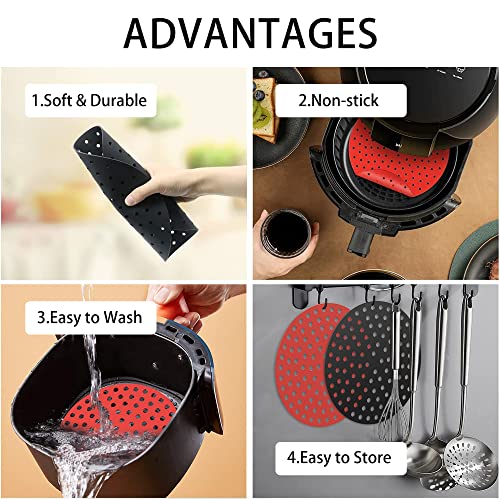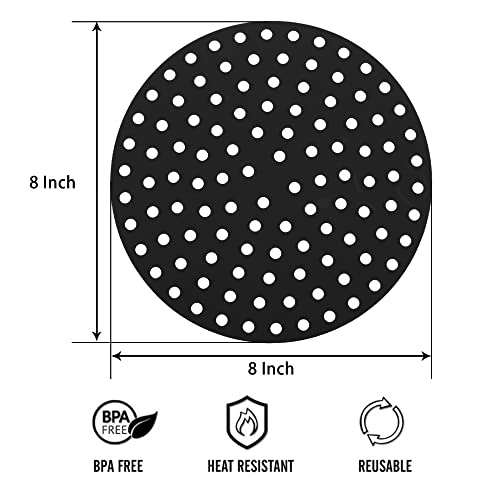 Air Fryer Mats, Silicone Air Fryer Basket Mat, Non-Stick Air Fryer Pad 8 Inch for Kitchen Cooking