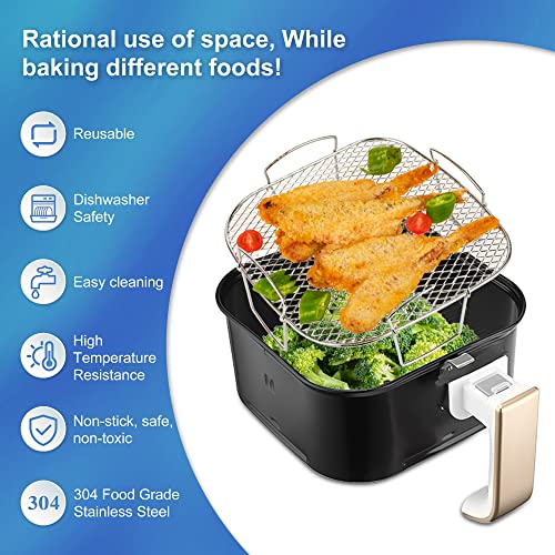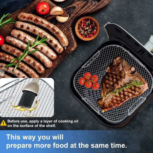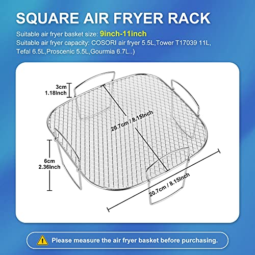 - 【Air Fryer Accessories for Square Air Fryer 】The airfryer rack is square, about 20.7 x 20.7x 9cm/8.07 x 8.07 x 3.54inch(L x W x H), suitable for most air fryers. It is available on both sides, you can flip the rack over to use it on either side.Compatible with COSORI air fryer 5.5L, air fryer oven 10L, Proscenic 5.5L, Tefal 6.5L, COSORI 6.4L, Gourmia 6.7L and More Square Air Fryer