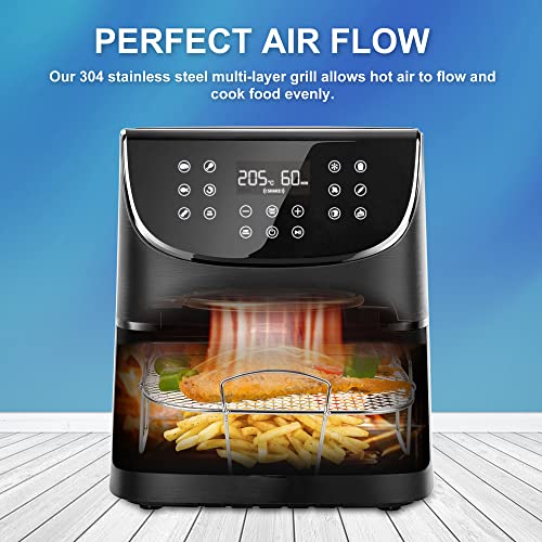 - 【Expand Cooking Area】 - Cooking various foods with your air fryer at same time, save time and energy. There is enough space between trays, ensure smooth air circulation in the air fryer, let the food heated more evenly, and make the food crispy on all sides