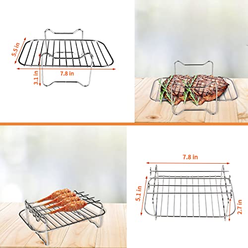 - 😋【8-Piece Air Fryer Accessories】- Air fryer rack air fryer accessories set, each of our set includes 1 stainless steel steam grill, 1 stainless steel grill rack, 4 stainless steel skewer, 1 oil brush and 1 anti-scalding clip to help you make kebabs, veggies,