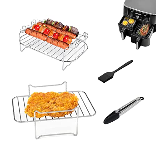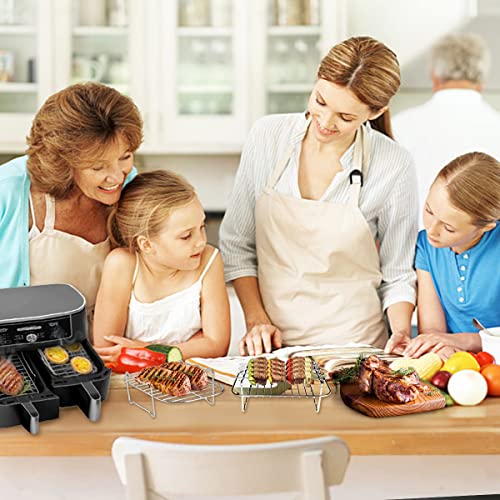 - 😋【Food Grade Material】- The air fryer's cooking accessories for dual basket air fryers are made of food grade materials. Air fryer racks are constructed of durable, sturdy food grade 304 stainless steel while following strict quality control guidelines and are